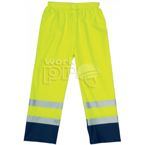 HARBOR PU FLUO ESONADRÁG SÁRGA/SÖTÉTKÉK:170 g/m? vízhatlan, szélálló, varrott plusz hegesztett, 100% poliészter PU borítással5 cm széles fényvisszaverő csíkokállítható, gumírozott derék és szűkíthető bokarészszín: sárga/sötétkékméret: MEU szabvány: EN340, EN343 (3.1), EN ISO 20471 (Cl 2)