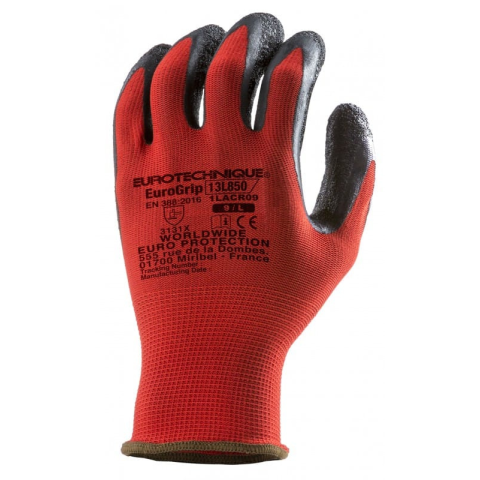 1 kép Coverguard Eurogrip 13l850 tenyerén latex mártott piros védőkesztyű