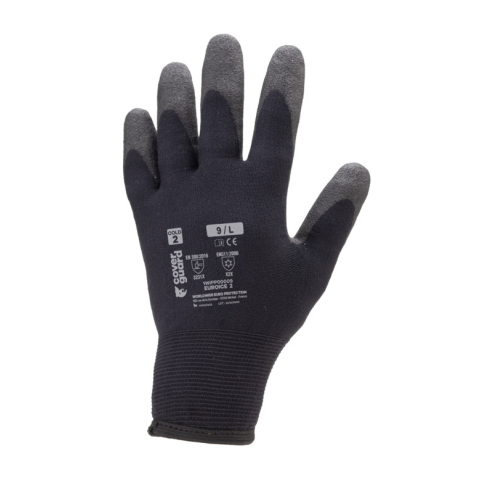 • bélelt szerelőkesztyű, hideg-, nedvesség- és mechanikai ártalmak ellen • 15-ös kötésű, kopásálló fekete poliamid alap • tenyéren fekete habosított, csúszásbiztos PVC HPT mártás • nedvességálló, vízlepergető Hydropellent™ felület • belül komfortos munkav