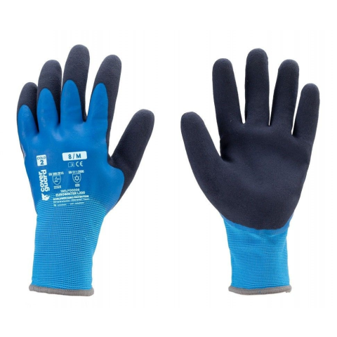 EUROWINTER L200 KÉK BÉLELT KESZTYŰ DUPLA LATEX_x000D_ _x000D_ bélelt szerelőkesztyű, hideg-, nedvesség- és mechanikai ártalmak ellen_x000D_ 13-as kötésű, kopásálló kék poliészter alapkesztyű_x000D_ végig kék, sima latex-szel mártva, a tenyerén és a