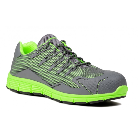 9FLU160 munkavédelmi cipő varrásmentes, szellőző hálós poliészter thermoplasztik poliuretán (KPU) felsőrész szellőző hálós poliészter bélés olaj-, és hőálló nitrilgumi talp, mely csúszásbiztos acél felületen és kerámia padozaton textil és perfo