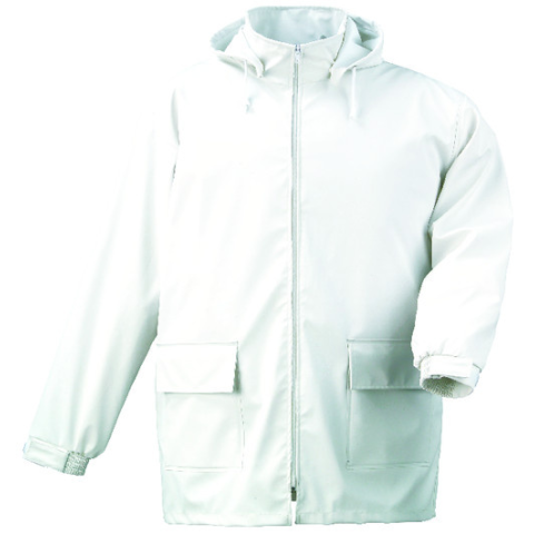 FOOD FEHÉR ÉLELMISZERIPARI KABÁT: • fehér színű, 210 g/m² vastag, 40% poliuretán és 60% poliészter összetételű alapanyag • hegesztéssel vízhatlanított varrás • könnyű, de erős, jó hőszigetelő védőruházat, mely eltérő hőmérsékleti körülmények között is vál