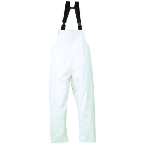 FOOD FEHÉR ÉLELMISZERIPARI MELLESNADRÁG:fehér színű, 210 g/m? vastag, 40% poliuretán és 60% poliészter összetételű alapanyaghegesztéssel vízhatlanított varráskönnyű, de erős, jó hőszigetelő védőruházat, mely eltérő hőmérsékleti körülmények között is változatlan komfortot biztosítellenáll élelmiszeripari vegyszereknekMellesnadrág (8FOOB): rugalmas, állítható vállpánt műanyag csatokkalzseb a mellrészenpatentos bokarészméret: SEU szabvány: EN340