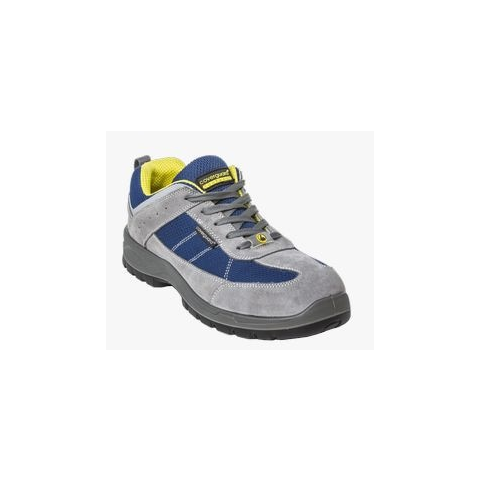LEAD S1P SRC munkavédelmi félcipő (9LEAL) - szürke velúrbőr felsőrész, kék színű kiválóan szellőző textil betéttel - könnyű kompozit műanyag lábujjvédő és Wellmax rugalmas textil talplemez - olajnak és más szénhidrogéneknek ellenálló, kétrétegű PU/P