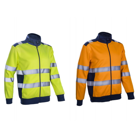 GOKKAN HI-VIZ SÁRGA/NARANCS CIPZÁRAS PULÓVER 300 g/m2 vastag, 75% poliészter és 25% pamut alapanyag 5 cm széles fényvisszaverő csík: 2 a test körül, 2 a karon és 1 a vállon álló gallér végéig érő cipzár kontraszt betétek a vállon, a mandzsettánál,