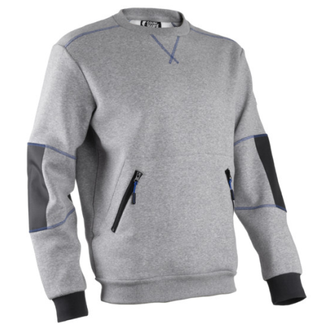 * Hato világosszürke dzsörzé pulóver* 70% pamut/30% PES, 300g/m2 vastag bolyhozott anyag + 300D oxford betétek Újragondolt pulóver Kényelem és puhaság: bolyhozott belső Egész évben hordható Ellenálló: megerősített könyökök