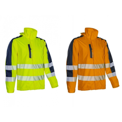 HOTARU HI-VÍZ SÁRGA/NARANCS SOFTSHELL DZSEKI 100 g/m2 vastag 2 rétegű Softshell alapanyag: 100% mechanikus stretch poliészter + TPU membrán 100% poliészter hálós bélés a testen ás a karokon és 55 g/m2 vastag 100% poliészter tafeta bélés a kapucnib