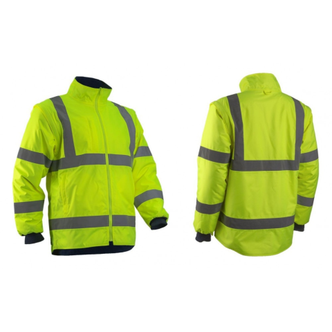 KAZAN KOMBINÁLHATÓ 2/1 HI-VIZ SÁRGA DZSEKI poliuretánnal mártott 100% Oxford 300D poliészter alapanyag 280 g/m2 vastag 100% PES polár bélés a testen a karon 120 g/m2 vastag poliészter melegbélés + 60 g/m2 vastag 100% PES taftalapanyag az alapanyag