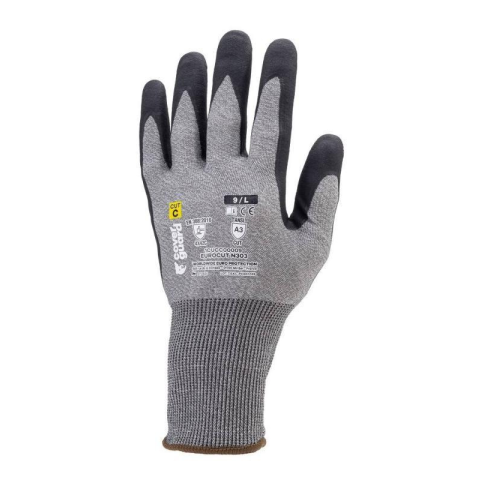 1CUCC00• maximális szakítás- és kopásállóságú, C szinten TDM vágásbiztosságú, 18-as kötésű, vékony multiszálas (HDPE, poliészter és spandex alapanyagú) szürke fogásbiztos védőkesztyű • tenyerén csúszásbiztos fekete mikrohabosított nitril mártás • érintőképernyőhöz is alkalmazható • gumírozott mandzsetta, szellőző hátrész • MÉRET: 7, 8, 9, 10, 11, 12 • CSOMAGOLÁS: 50/5EN 388: 2016 4x42C