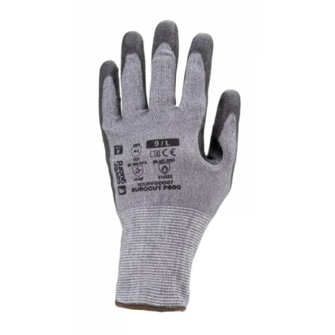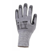 • maximális szakítás-, szúrás- és kopásállóságú, a legmagasabb F szintű TDM vágásbiztossággal, 13-as kötésű, multiszálas (HDPE, poliészter és spandex alapanyagú) szürke védőkesztyű• tenyerén fekete kopásálló PU mártás, kiváló fogásbiztosság• nitril megerősítés a mutató- és hüvelykujj között100°C kontakt hőhatásnál 15 sec időtartamig nyújt védelmet• használata elsősorban száraz környezetben ajánlott• gumírozott m