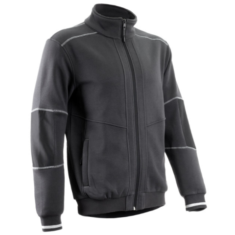 * sötétszürke, 300 g/m2 vastag alapanyag: 70% pamut és 30% poliészter, Oxford 300D alapanyagú megerősítés * 95% poliészter és 5% elasztán alapanyagú rugalmas, bordázott textil mandzsetta és aljrész * az álló gallér tetejéig futó cipzár nyak- és állvédőve
