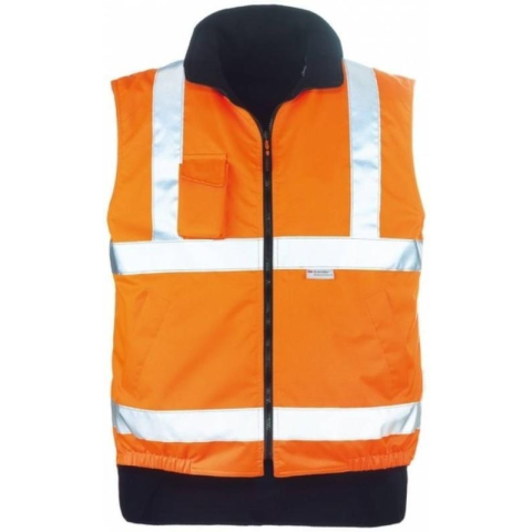 HI-WAY BÉLELT FLUO MELLÉNY NARANCS:70% Oxford poliészter anyag, vízhatlan 30% PU bevonattalpuha, meleg, 280 g/m fekete polár béléskifordítva is viselhető fazon, a jól láthatósági rész ilyenkor belülre kerülkettő vízszintes, egy függőleges, 3M Scotchlite fényvisszaverő csíkhosszított hátulsó vesevédő, gumibetétes aljkét oldal