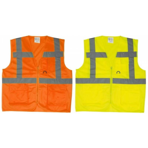 YARD TÖBBZSEBES FLUO NARANCS MELLÉNY:zárt, cipzáras mellény 120 g/m2 vastag, szellőző poliészter alapanyagbóljól láthatósági narancs (7YGMO) színbenkét vízszintes, egy-egy függőleges, 5 cm széles fényvisszaverő csíkbiztonságos cipzárkét oldal-, egy telefonzseb, egy tolltartó zseb és egy kulcstartóMÉRET: XLEU szabvány: EN340, EN ISO20471:2013 (Cl 2)