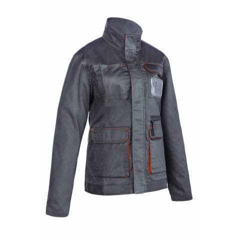 MISTI NŐI MUNKAKABÁT SZÜRKE/NARANCS Cikkszám: 5MIJ150 245 g/m2 vastag, kopásálló, lánckötésű anyag, 60% pamut, 40% poliészter női fazonú bikolor kabát rejtett húzózárral, állítható mandzsettával állig érő húzózár, magas álló gallér beépített