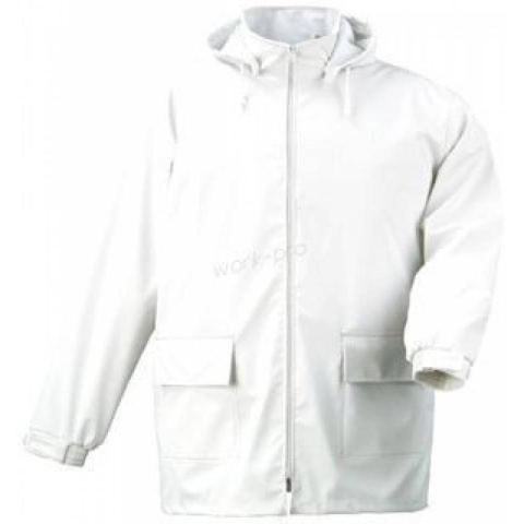 FOOD FEHÉR ÉLELMISZERIPARI KABÁT:fehér színű, 210 g/m? vastag, 40% poliuretán és 60% poliészter összetételű alapanyaghegesztéssel vízhatlanított varráskönnyű, de erős, jó hőszigetelő védőruházat, mely eltérő hőmérsékleti körülmények között is változatlan komfortot biztosítellenáll élelmiszeripari vegyszereknekKabát (8FOOV): állógalléros, végig cipzáras, fehér dzsekipatentos, levehető, zsinórral szűkíthető kapucnigumis csuklópasszé tépőzáras
