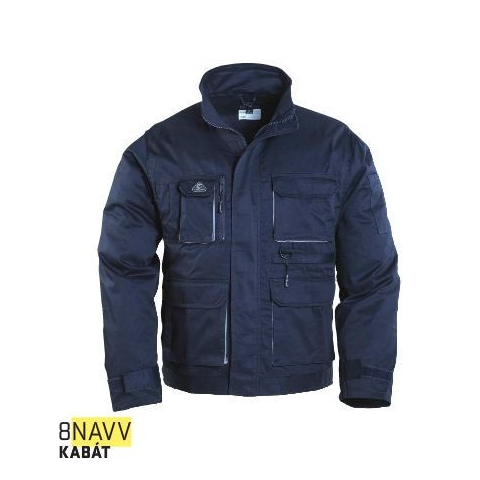 Kabát dzsekifazonú, rejtett húzózáras, nyolc zseb, plusz derékon hátsó nagy rekesz R-C/N/P-V - 245g/m2 kopásálló, lánckötésű anyag, 60% pamut, 40% poliészter - egyenes fazonú, kényelmes ruhák nagy szakítószilárdságú, testbarát anyagból - praktik