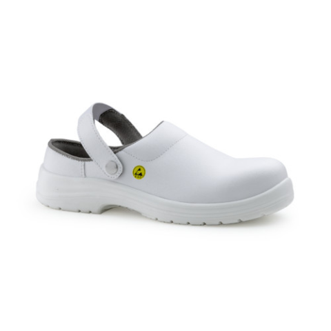 OKENITE (SB SRC) KLUMPA: • fehér, antisztatikus védőlábbeli, vízlepergető és szellőző mikroszálas felsőrésszel, kompozit orrmerevítővel, sarokpánttal • bevizsgált és nedves, tisztítószeres kerámia és acél felületre (SRC) minősített, csúszásbiztos, hajléko