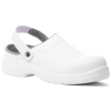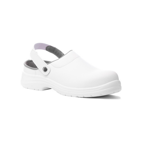 Fehér antisztatikus munkavédelmi klumpa, magas védelmi képességgel, kompozit lábujjvédővel. A klumpa talpa hajlékony, csúszásmentes. Talpa nagy kopásállóságú, ellenáll lúgoknak, állati zsíroknak, növényi olajoknak. Nagy védelmi képességű (SB, A, E, SR