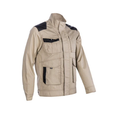 • 240 g/m2 vastag, 35% pamut + 65% poliészter kevertszálas ripstop (továbbszakadás biztos) alapanyag • kopásálló Oxford PES betétekkel megerősített erősebben igénybe vett területek: vállak, zsebek körüli részek • egyenes szabású, modern dzsekifazonú bikol