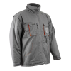 • 245 g/m2 vastag, 60% pamut+40% poliészter kevert szálas sávolykötésű alapanyag • melegbélés: 220 g/m2 vastag, 100% poliészter • belső bélés: 110 g/m2 vastag 80% pamut és 20% poliészter • hideg elleni minősítéssel • szürke kabát narancs színű kontraszt b
