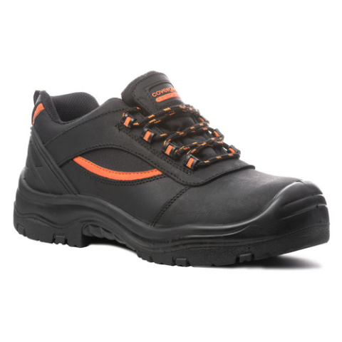 • fekete, vízlepergető és szellőző színbőr felsőrész • nedvszívó, gyorsan száradó, lélegző belső bélés • könnyű kompozit műanyag lábujjvédő (CK) • flexibilis, fémmentes, átszúrás elleni talplemez • olajálló, antisztatikus, kétrétegű PU talp, ütődéselnyelő