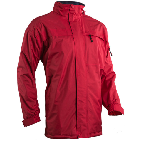 POLE-NORD PIROS TÉLIKABÁT: • PVC-vel vízhatlanított 100% poliészter • thermo 240 g/m² polár meleg bélés • rejtett kapucni, polár bélésű gallér • oldal-, felső-, kar- és belső zsebek • kétutas cipzár tépőzáras hajtókával • zsinórral állítható alj- és derék