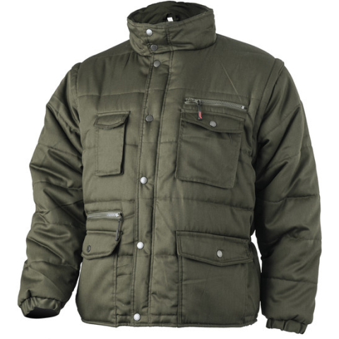 POLENA SLEEVE ZÖLD KABÁT: • 35% pamut, 65% poliészter anyag • 2 az 1-ben modell: levehető ujjakkal mellénnyé alakítható • 200 g/m² poliészter bélés, kényelmes poliamid belső • álló gallér két patenttal • derekat védő hosszított hátrész • két lenti-, két c