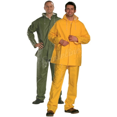 PVC ESÖRUHA - sárga vagy zöld zöld ruha: 50200-204 (sav- és lúgálló, antisztatikus) sárga ruha: 50210-214 (sav- és lúgálló, antisztatikus) poliészter/pamut alapra kétszer mártott PVC 0,32 mm vastag, varrott és hegesztett, vízálló cipzáras és