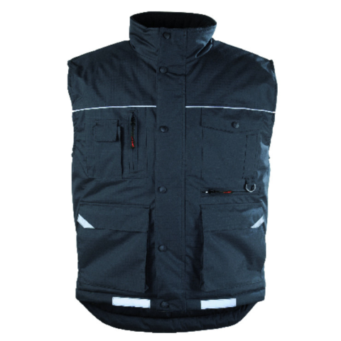 * Szakadásbiztos, Ripstop rácsos szerkezetű, PVC-vel vízhatlanított poliészter külső alapanyag * 180 g/m2 poliészter közti bélés, 210T taft belső bélés * Négy külső-, két cipzáros- és két belső zseb * Fényvisszaverő díszcsíkok, gumírozott ujjnyílások