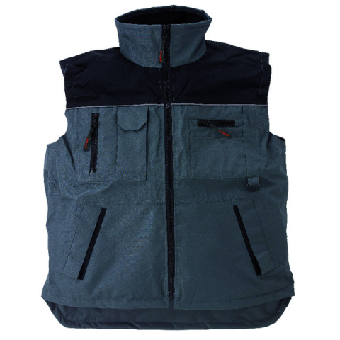 * szakadásbiztos, Ripstop rácsos szerkezetű, PVC-vel vízhatlanított poliészter alapanyag* felül 280 g/m2 polár, alul 120 g/m2-es, derekat védő poliészter belső bélés* négy külső-, két cipzáros- és két belső zseb* gumírozott ujjnyílások, derekat védő hossz