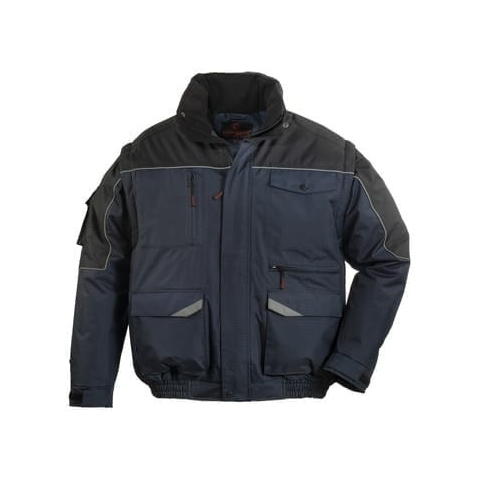 RIPSTOP DZSEKI XBMR • szakadásbiztos, Ripstop rácsos szerkezetű, PVC-vel vízhatlanított poliészter alapanyag • 140 g/m2 puha poliészter taft bélés • 2 az 1-ben kivitel: levehető ujjakkal mellénnyé alakítható modell • szín: szürke/fekete vagy tengerkék/fek