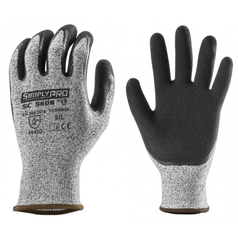 SC560N VÁGÁSBIZTOS KESZTYŰ TENYERÉN DUPLA FEKETE NITRIL_x000D_ _x000D_ _x000D_ 13-as kötésű, maximális kopásállóságú, szürke színű, emelt szinten vágásbiztos és tartós HPPE + ásványi szál + PA és elasztán alapanyagú alapkesztyű_x000D_ tenyerén két rét