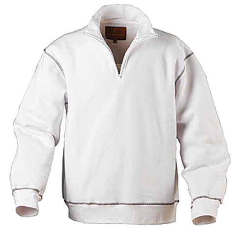300 g/m²-es, 60% poliészter, 40% pamut anyagú bebújós pulóver. Tartós és kényelmes, egyenes vonalú, galléros fazon, cipzáras nyakrésszel. Látható, eltérő színű sárga biztonsági varrás, hátul lent Coverguard logó. Gumírozott csukló- és aljrész.