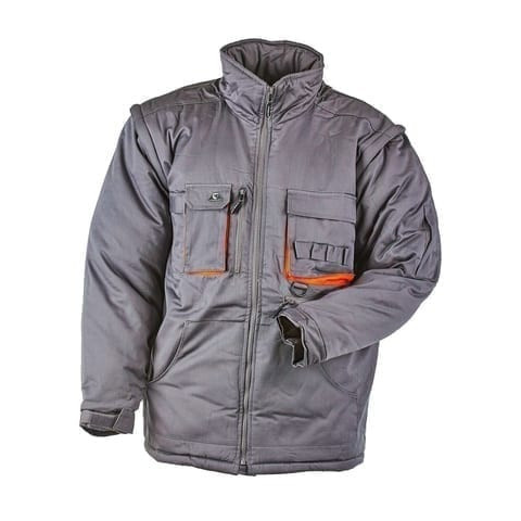 PADDOCK 2/1 TÉLIKABÁT:245 g/m? vastag, kopásálló, lánckötésű anyag, 60% pamut, 40% poliészteregyenes fazonú, kényelmes ruhák nagy szakítószilárdságú, testbarát anyagbólpraktikus zsebek, kulcstartók és mobil kiegészítők (névjegytartó, térdeplőbetét)esztétikus, eltérő színű zsebfedők, bőségráncok, karöltők és cipzárakSZÍN: szürke, narancs díszítésselTélikabát (8PADW): 2IN1 MODELL: mellénnyé alakítható bélelt kabát levehető ujjakkal és béle