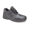 • fekete biztonsági védőlábbeli színbőrből, ESD tulajdonsággal • antisztatikus, olajálló, hajlékony kétrétegű PU talp, SRC fokú nedves kerámia és glicerines acél felületre bevizsgált csúszásmentességgel • acél lábujjvédő leeső tárgyak- és acél talplemez t