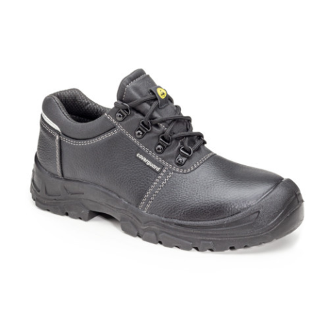 • fekete biztonsági védőlábbeli színbőrből, ESD tulajdonsággal • antisztatikus, olajálló, hajlékony kétrétegű PU talp, SRC fokú nedves kerámia és glicerines acél felületre bevizsgált csúszásmentességgel • acél lábujjvédő leeső tárgyak- és acél talplemez t