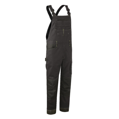 • 270 g/m2 vastag, 60% pamut + 40% poliészter kevertszálas alapanyag • kopásálló Oxford 100% PES betétekkel megerősített részek: Térd, lábszár alja, zsebeknél stb. • állítható műanyag csatos vállpánt, regular szabású, divatos formai kialakítás díszvarráss