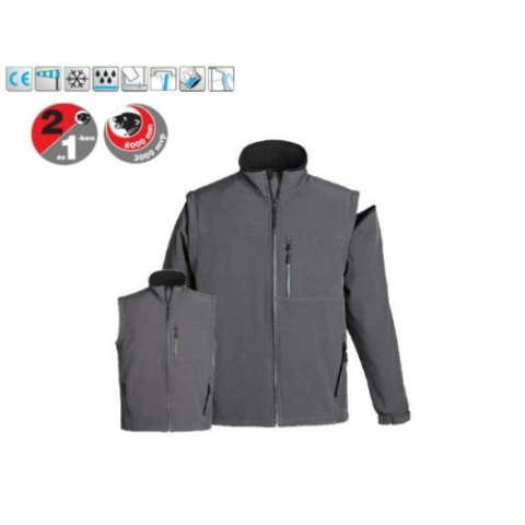 1 kép Coverguard YANG 2/1 softshell cipzáras szürke kabát/Munkásmellény, lélegző és vízhatlan,