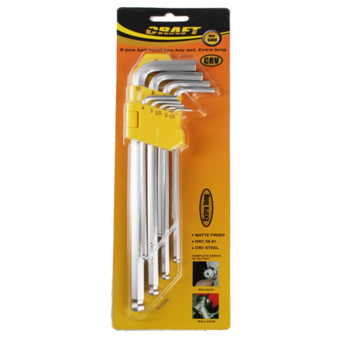 1 kép Craft IMBUSZKULCS KÉSZLET 9DB, GÖMBVÉGGEL CRV EXTRA HOSSZÚ