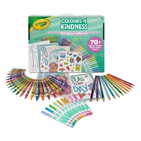 A Crayola Kedves szavak művészkészlet tökéletes választás a kreatív alkotáshoz. A 70 darabos szett mindent tartalmaz, amire a gyerekeknek szükségük lehet a rajzoláshoz, színezéshez és matricázáshoz. A színezők nemcsak vidámak és elbűvölők, hanem pozitív ü