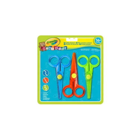 A Crayola Mini Kids 3 db-os mûanyag olló készlet egy színes, mûanyagból készült három darabos, különbözõ mintát vágó ollót tartalmazó készlet. Kifejezetten a legkisebbeknek ajánlott az elsõ vágásokhoz. Cikkcakkos, hullámos vagy egyenes? A Crayola ollóival mókás lesz a vágás gyakorlása.A termékcsaládról: A Crayola Mini Kids termékek már 1 éves kortól biztonsággal használhatók. Az írószerek tömzsik és könnyen megfoghatók, kifejezetten a pici kezek szá