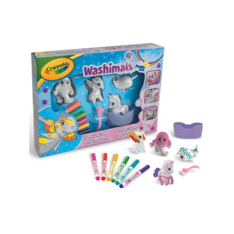 Ki mondta, hogy csak a lovak válhatnak szivárványszínben pompázó egyszarvúvá? A Crayola Washimals állatkornis játékszettben 4 figura, Una, Neddie, Naomi és Dex várja, hogy a gyerekek új színt adjanak kültakarójuknak. A kicsik szabadon színezhetik, firkálhatják és dekorálhatják a figurákat a csomagban rejlő 6 különböző színű filctollal. Ha elkészült az alkotás, elég csak lemosni az imádnivaló varázslényeket a készletben található kádban, és kezdődhet i