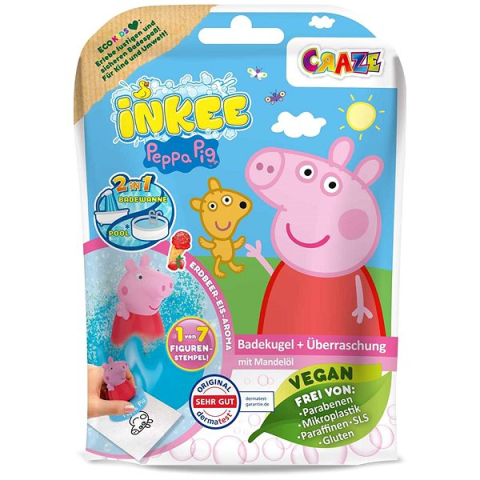 Fürdőbomba - gyerek, relaxáló hatás, normál bőrtípusra ajánlott, gyümölcsös illat, vegán kozmetikum A kiváló CRAZE Inkee meglepetés Peppa malaccal fontos jellemzői A frissítő Craze gyerek fürdőbomba mulatságossá teszi a pancsolást Kellemes környezetet varázsol a fürdőszobádba kellemes gyümölcsös ill