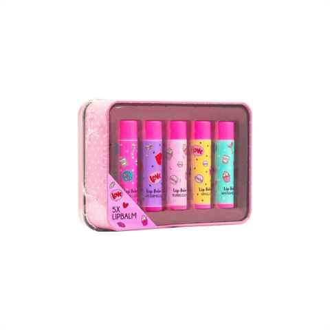 5 darabos ajakápoló készlet gyerekeknek a Canenco-tól praktikus fémdobozban. A tubusok különböző ízt rejtenek: 2 db rágógumi, 2 db dinnye és 1 db vanília. 6 éves kortól ajánljuk.