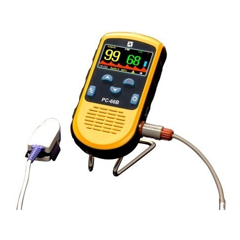 Oxigénszaturáció-, pulzusszám- és intenzitásmérő műszer szívritmusgörbével	A készülék segítségével fájdalommentesen mérhető az erekben az oxigén szállítását végző vérfesték (hemoglobin) oxigéntelítettsége.	Működése	Használata egyszerű és kényelmes. A méréshez nem szükséges vérvétel, nem kell a vizsgált személyt megszúrni. Kis súlyának köszönhetően szinte észrevétlenül biztosít folyamatos ellenőrzést. A készüléket az ujjra csíptetve