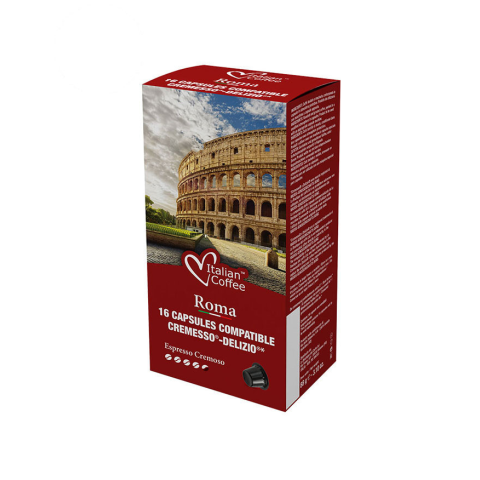 Élvezd az igazi, testes olasz eszpresszó élményét otthonodban! Az Italian Coffee Roma kapszulái intenzív, csokoládés utóízű kávét kínálnak, melyek tökéletesen kompatibilisek a Cremesso® és Delizio® kávéfőzőkkel.