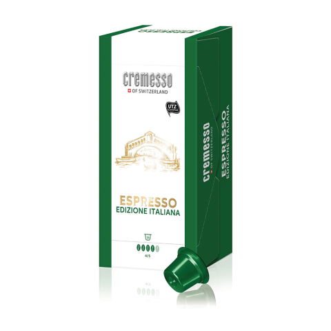 Az aromás, szenvedélyes Espresso Edizione Italiana nemes Arabica babokat, valamint kiváló minőségű Robusta babot tartalmaz Közép- és Dél-Amerikából, Afrikából és Ázsiából. A kávét az UTZ-tanúsítvánnyal összhangban dolgozzák fel.