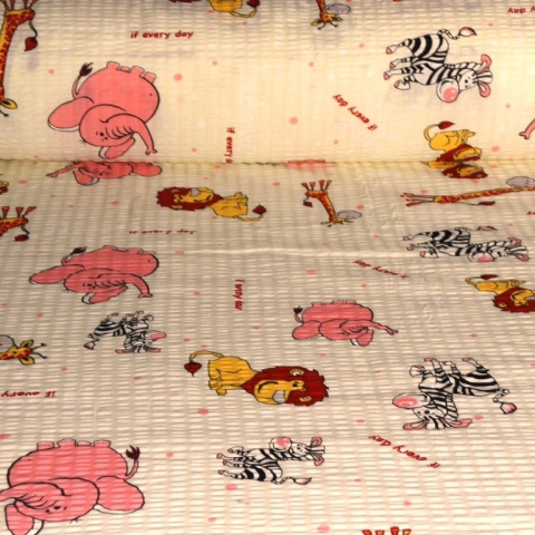 1 kép Crepe ELI, állat mintás, krém-rózsaszín, pamut krepp vászon