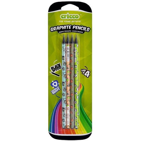 Ceruza - háromszögletű markolat, jobb- és balkezes kialakítás, HB keménység, ergonomikus, többszínű kivitel, 4 darabos készlet A hasznos CRICCO HB, háromszög alakú, motívumokkal - 4 darabos csomagban ceruza fontosabb előnyei A hasznos CRICCO ceruza sokoldalúan használható íráshoz és rajzoláshoz Irodában, iskolában, de otthon