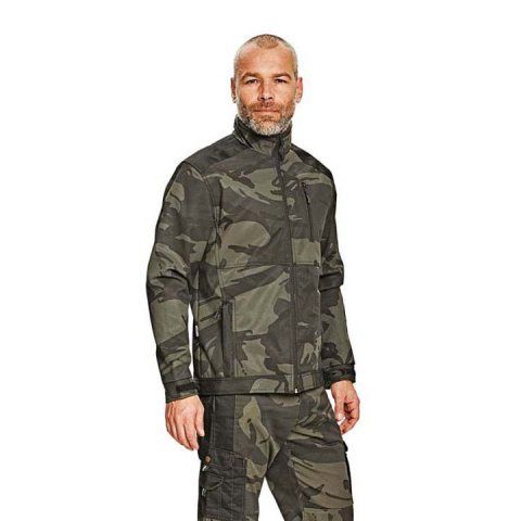 Softshell kabát terepszínű Alapanyag: 100 % poliészter / TPU, 600D Oxford, 300 g/m²Férfi softshell dzseki álló gallérral.Vállakon Oxford 600D erősítések, cipzáras oldalsó zsebekkel, cipzáras mellzsebbel.Kabát ujja tépőzárral szűkíthetőNagy teljesítményű